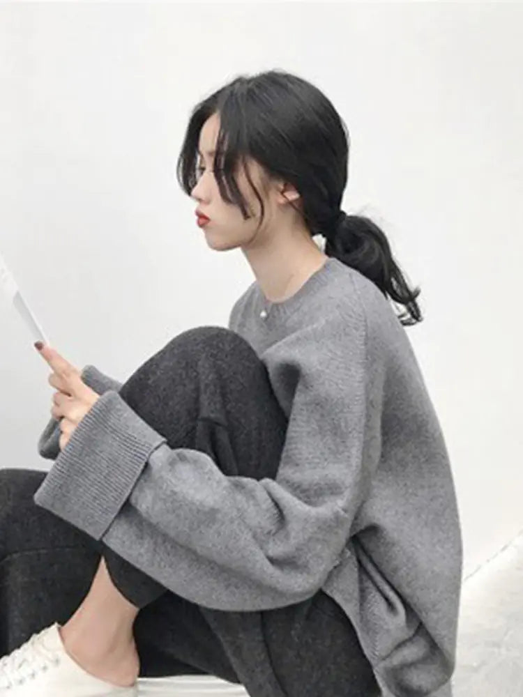 Korean Style Loose Sweater and Wide Leg Pants Set