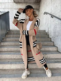 Embrace the cozy vibes of autumn and winter with our stunning Plus Size Cardigan. This long cardigan is designed with a stylish striped pattern, offering both warmth and a touch of elegance to your wardrobe. Made from a soft knitted sweater fabric, it's perfect for layering over your favorite outfits to keep you snug and chic.